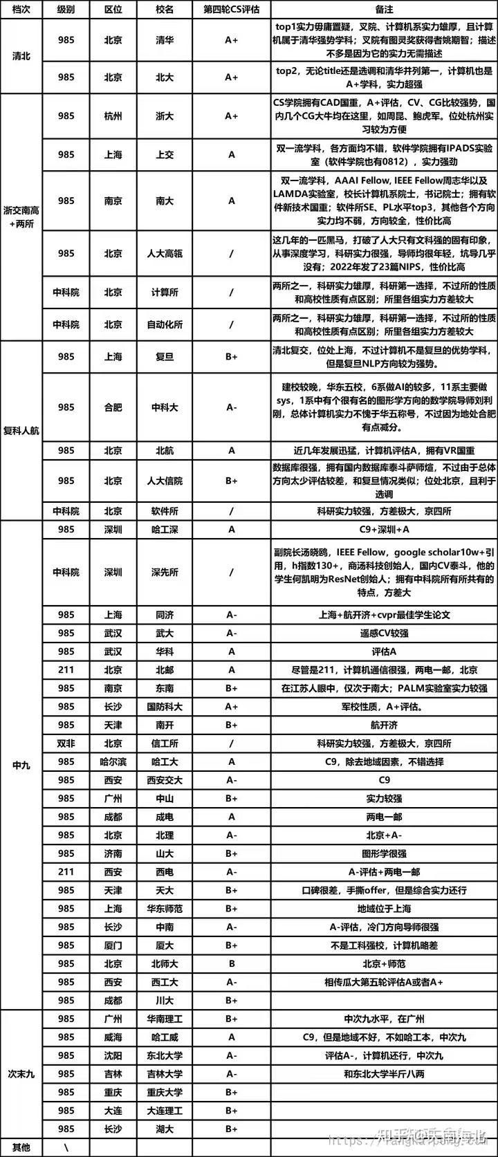 title:院校档次,如tp,华五,中九等。以下是一个版本的计算机保研院校天梯图。